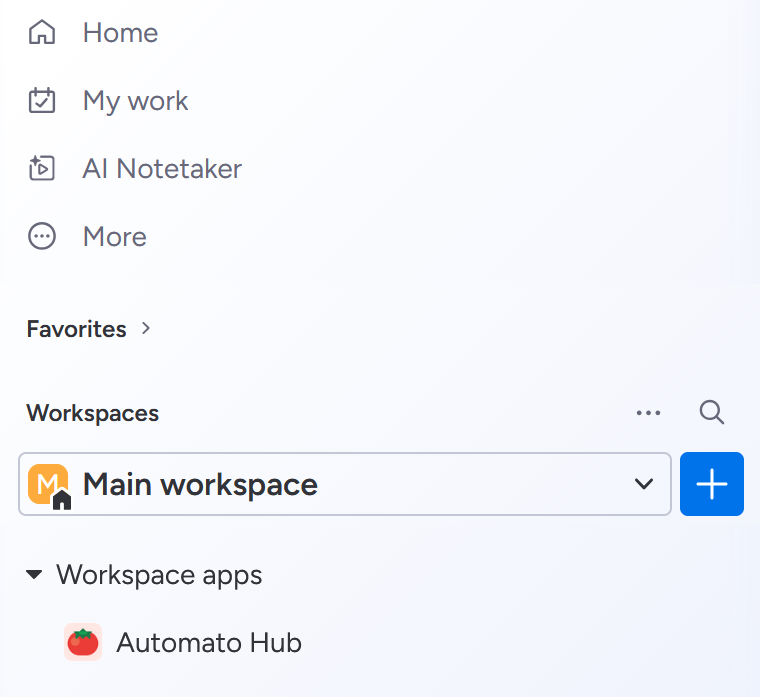 To view the Automato Hub, navigate to the left pane of your board, and open the Workspace apps menu. There you will find a link to the Automato Hub.