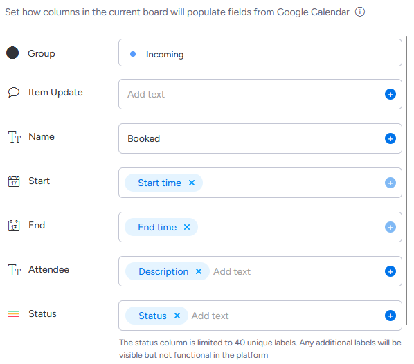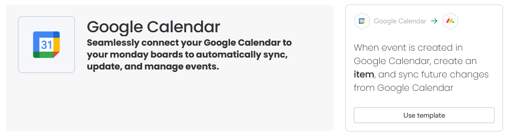| Google Calendar | Create Monday forms to allow your visitors to register. Alternatively, use Google Calendar appointment schedules to allow prospects to register to attend and sync these into a registrations board. |